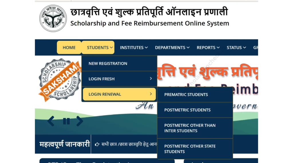 UP Scholarship Renewal प्रक्रिया (नवीनीकरण)